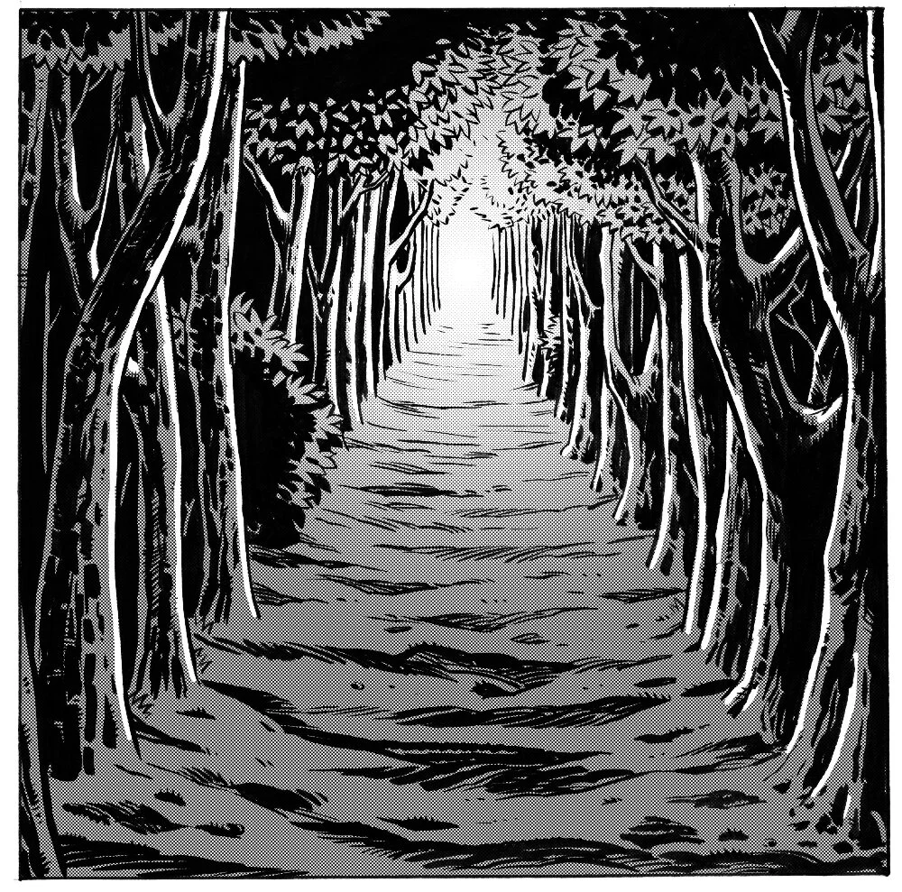 I like the look of screentone on black and white artwork. I particularly like real, physical tone, cut out and applied by hand. That’s the way this project started, but unfortunately all the tone here has been applied digitally after-the-fact. I do have some real screens that I’ve used from time to time, but not enough for a project like this, and as far as I can tell in order to get it new these days it has to be ordered from Japan at $12 a sheet. A bit much for what this is. I’ve tried making my own by printing dots on clear mailing labels, but the adhesive was too strong and the labels cloudy, so that it was both difficult to work with and reproduced poorly. Anyway, this is not bad. Hell, I can have any pattern I want — it is strictly better. Still, I am often attracted to the tactile nature of physical materials.